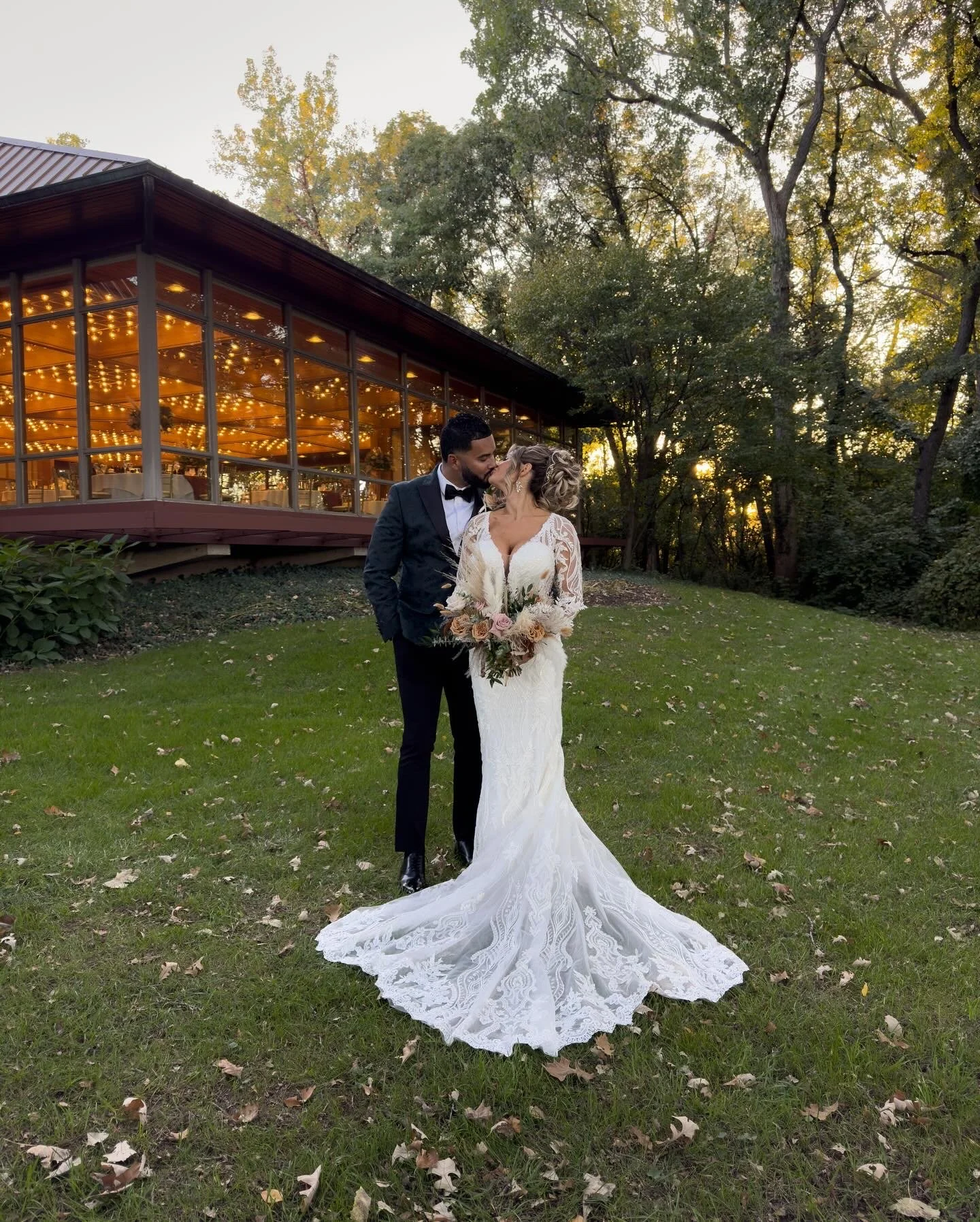 The October wedding held at the Hyatt Lodge just outside of Chicago was absolutely breathtaking. The venue was adorned with stunning fall floral arrangements, creating a picturesque setting that perfectly complemented the elegance of the bride's wedding dress. The atmosphere was filled with a sense of enchantment, as the vibrant colors of the flowers and the natural beauty of the surroundings came together seamlessly. It was a truly magical day, where every detail, from the decor to the attire, contributed to the unforgettable charm of the ceremony.