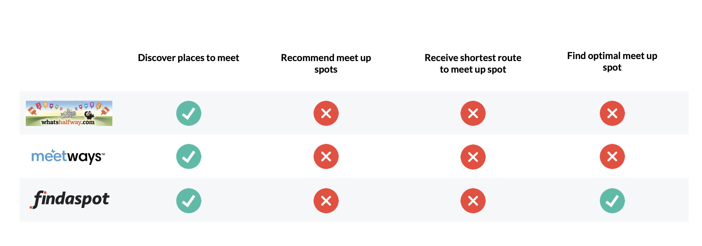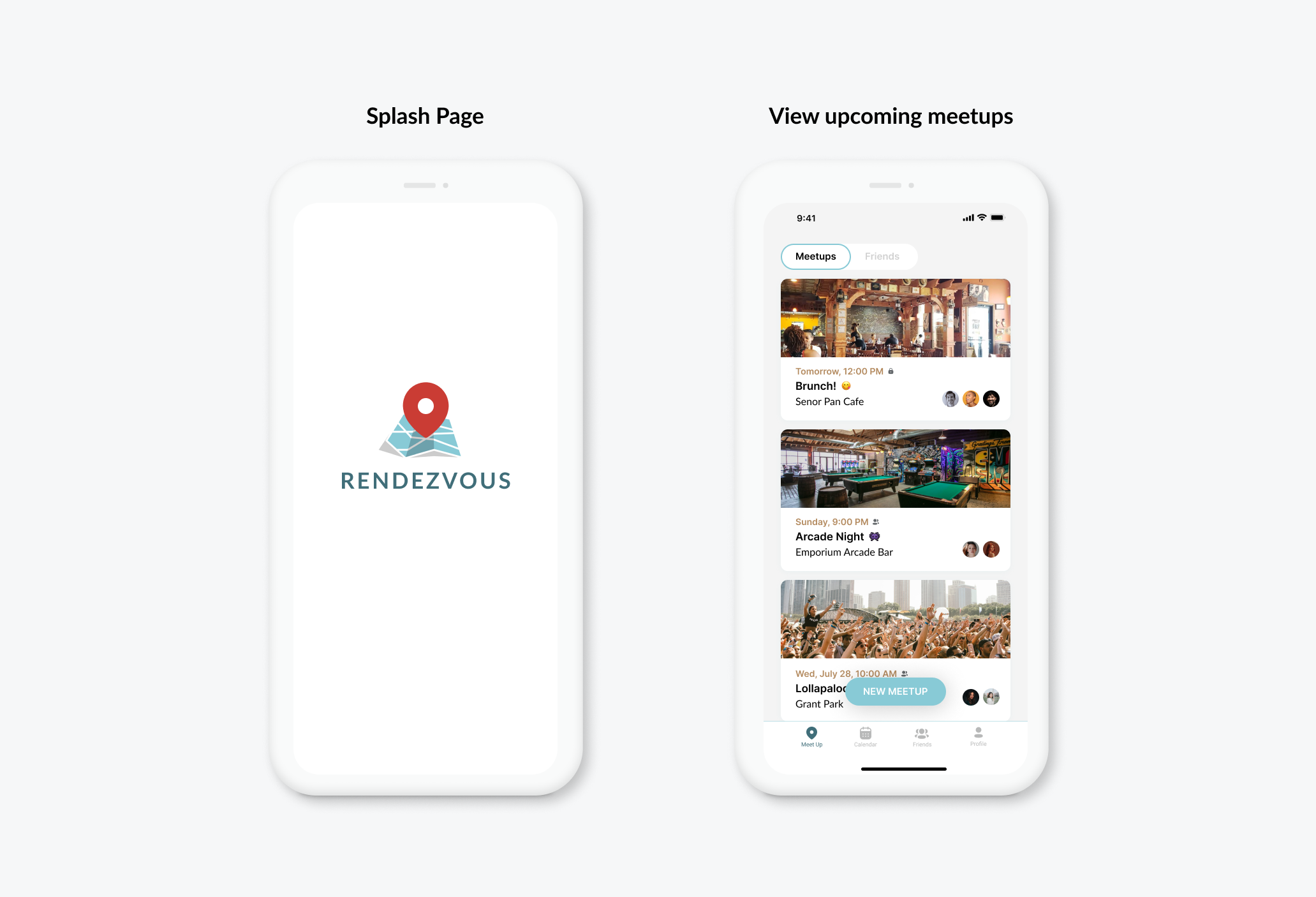 The app was intended to support the key function of finding a meet up spot for a group of up to six friends.